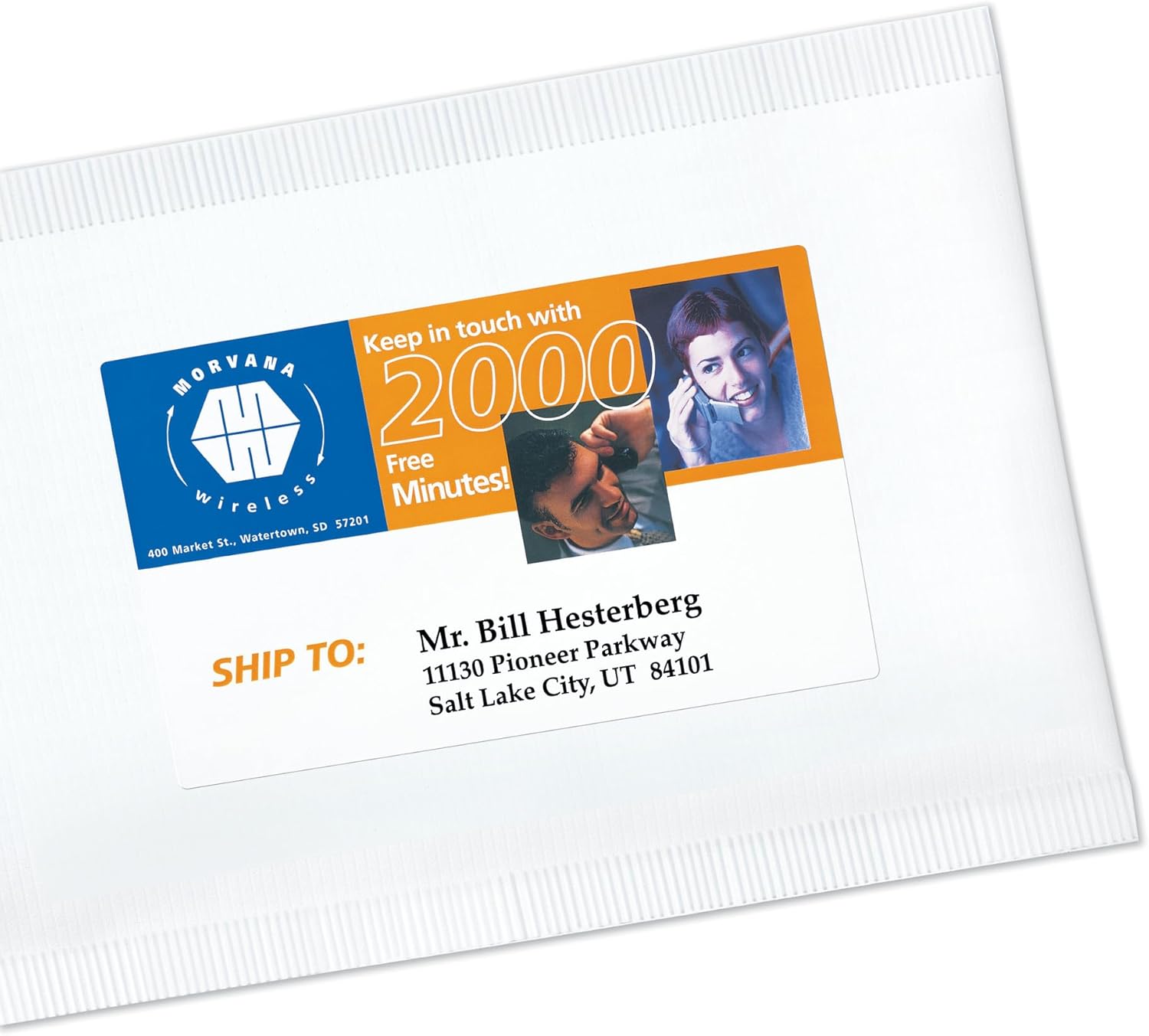 Deliver a lasting impression with Avery 6876 Print-to-the-Edge 4.75" x 7.75" Shipping Labels, designed for bold colorful designs perfect for mailing, branding, marketing, and everyday labeling. The bright matte white surface enhances colors and text, keeping every detail sharp and easy to read. With Print-to-the-Edge capability, you can create stunning, personalized sticker labels with full-bleed designs right to the edge-no margins, no wasted space. A strong permanent adhesive ensures these white labels stick firmly to flat, smooth surfaces without curling or falling off, so you can ship, sell, or organize with confidence knowing these printable stickers stay where you need them. Compatible with both laser and inkjet printers, you can easily print product labels, address labels, packaging labels, school labels, bin labels, and more right from your desktop with professional results. Plus, built-in Sure Feed technology creates a more reliable feed through your printer to reduce misalignments and printer jams. Easily design labels your way using Avery Design & Print and the available label templates and design tools. You can also create unique, distinctive designs by hand for a truly personalized touch. Versatile and reliable, Avery shipping labels provide the quality, flexibility, and professional results you can trust.