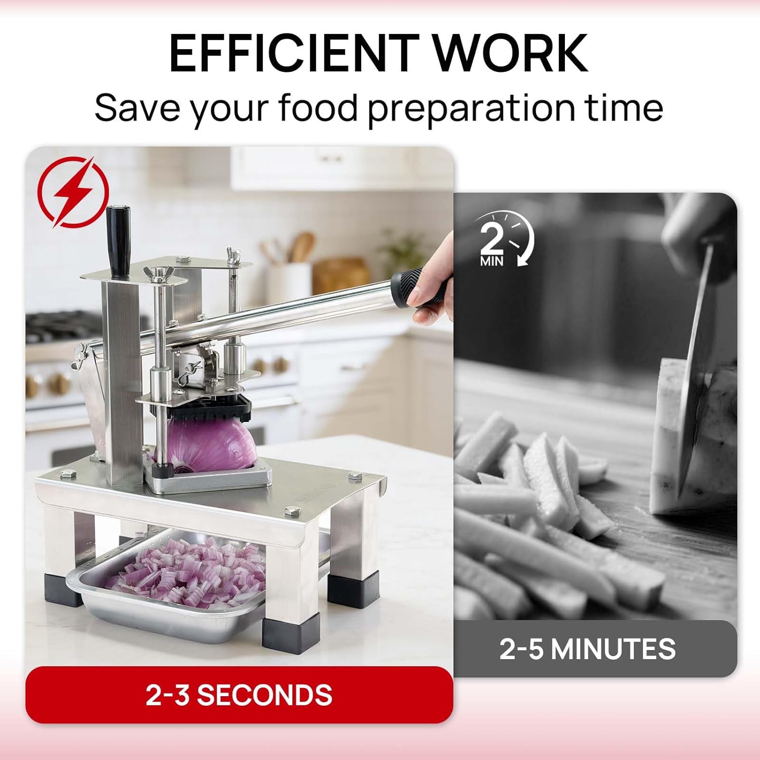 | Included Components | 1/2" blades, 1/4" blades, 3/8" blades, French Fry Cutter |