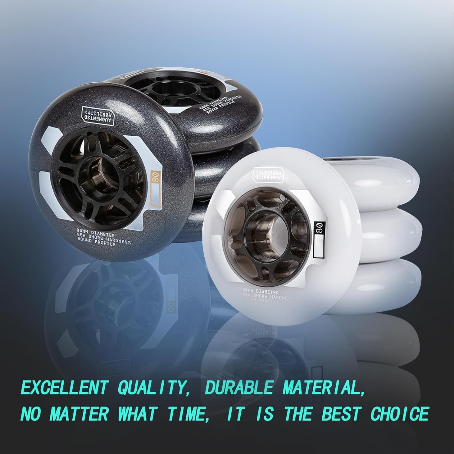 Good shock absorption and good elasticity When cornering, it acts more on the inner ring wheel meat, and the deformation is large, so the contact area increases and the grip is strong!Roller Skating Wheels Specification:Name: Inline Skate WheelsMaterial: PUBearings: Without bearingsHardness: 85ASize: 125mmColor: white, blackApplicable: any venueFeatures: high elasticity and wear resistancePackage Contents:3 × Inline Skate WheelsPlease Note:1. Since the size is manually measured, there may be a slight deviation, please understand.2. Due to different displays, there may be slight color differences. Please refer to the actual product received. Please understand.3. If you have any questions, please feel free to contact us. We will get back to you within 24 hours.