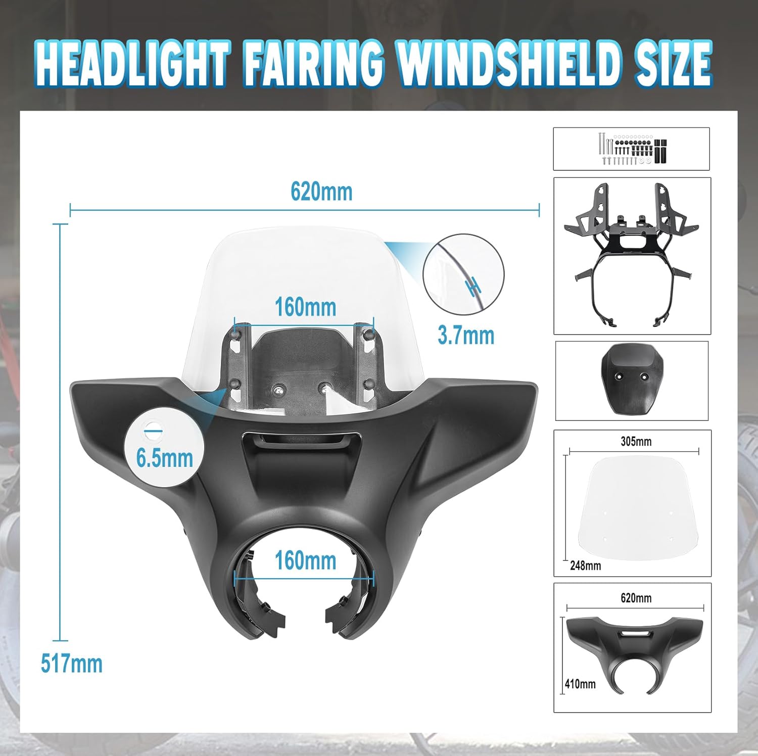 | Included Components | 1 Piece Headlight Cowl Fairing, 1 Piece Windshield Deflector, 1 Set Mounting Braket, 1 Set Mounting Hardware Screw Kit |