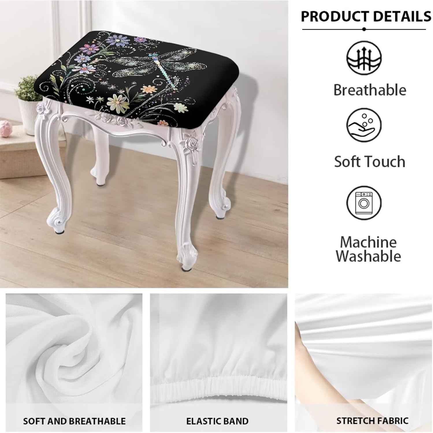 Elevate your home decor with our Stool Covers Rectangular, designed for both style and functionality. Made from high-quality polyester, our Vanity Stool Cover is soft, comfortable, and durable, ensuring it withstands everyday use. The fade-resistant fabric and stretchy material provide a snug fit, while the secure elastic band keeps it in place, making maintenance effortless with machine washability. Our Bar Stool Slipcover fits a variety of stools, including rectangular and saddle stools, making it a versatile addition to your furniture. Measuring between 14"-20" in length, 10"-14" in width and 1.5"-2.5" in Height, these covers are perfect for standard-sized stools. Before purchasing, be sure to measure your stools to ensure optimal coverage and a tailored fit. Installation is a breeze! With an elastic band at the bottom, our Saddle Stool Cover is easy to put on and remove, providing an anti-slip fit that remains secure even with frequent use. Enjoy the convenience of transforming your stools in just minutes, enhancing your space without the hassle. Not only do these covers protect against spills, stains, and wear, but they also add an elegant touch to your home. The charming designs complement your existing decor, making them ideal for families, restaurants, and cafes. Plus, they are perfect for special occasions where you want to impress your guests. Versatile and stylish, our Vanity Chair Cover is perfect for a wide range of settings, from cozy homes to bustling bars and restaurants. Whether you're hosting a dinner party, decorating for a holiday, or simply refreshing your space, these stool covers are the perfect solution to elevate your decor while providing practical protection.