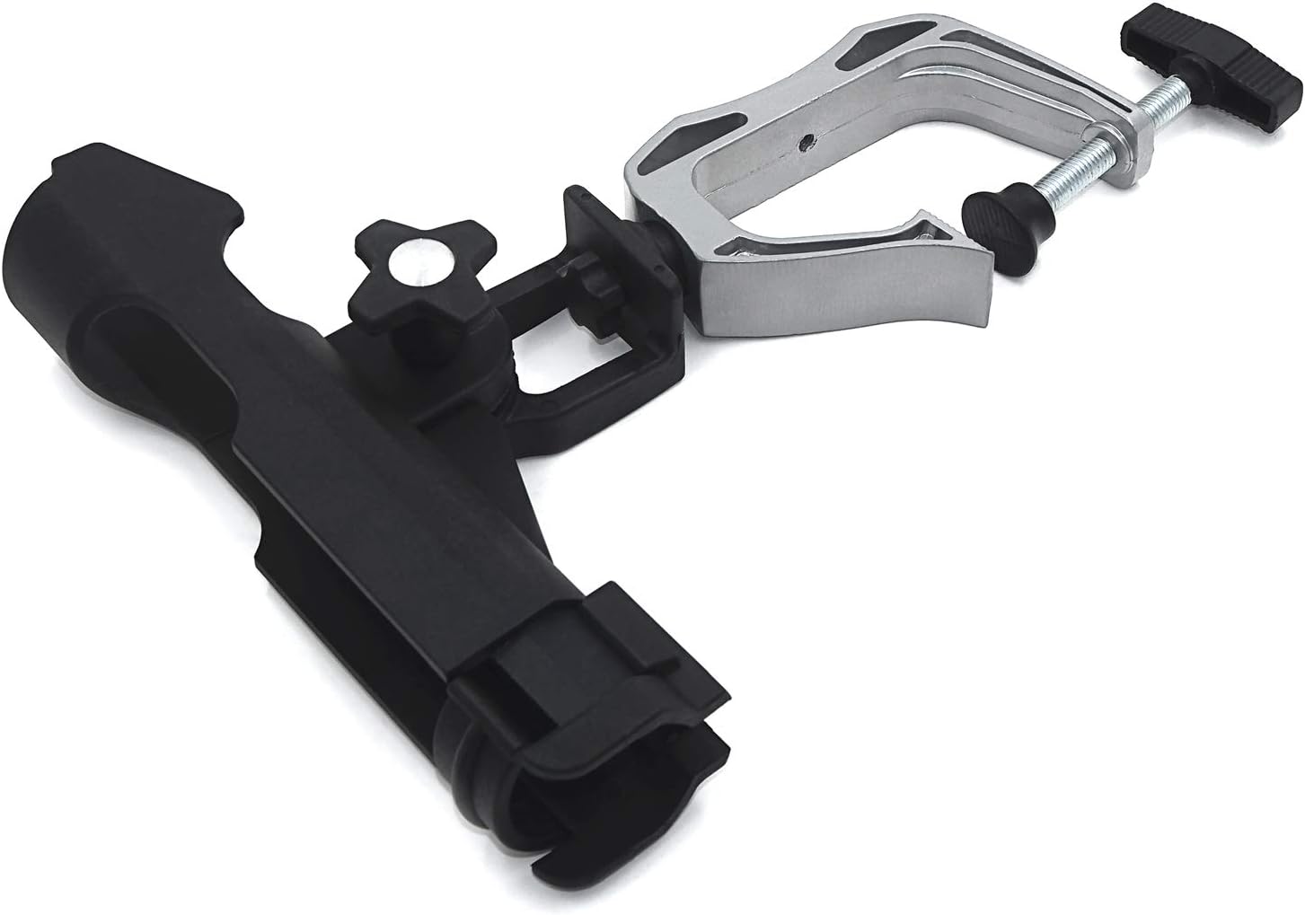 Features:ECO-FRIENDLY MATERIAL & ANTI-CORROSION. This fishing rod holder is made of high quality and eco-friendly material, strong & anti-corrosion; Constructed with high impact resistant heavy duty ABSUNIVERSAL FIT. Accommodates spinning, casting and spincast rod handles; Large clamp on opening can clamp to anywhere you want (MAX OPENING 1.97"). 360 degree adjustable. Can be surfaced or rail mountedHIGH IMPACT RESISTANT CONSTRUCTION, MORE STABLE. The construction is very easy to hold on the boat or kayaks which is very steady. Great for Boats or kayaks, includes stainless steel hardwareEASILY INSTALLED. No pain to drill hole on your favorite boat, the clamps with thump screws on to any part of the boat, vertical or horizontal surfaces