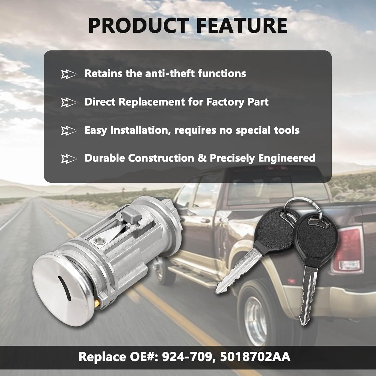 RAMATA Ignition Lock Cylinder Switch & 2 Keys compatible with 2001 2002 2003 2004 2005 2006 2007 2008 2009 2010 Dodge Ram Durango Dakota Chrysler Aspen& Mitsubishi Raider, Replace # 924-709, 5018702AA